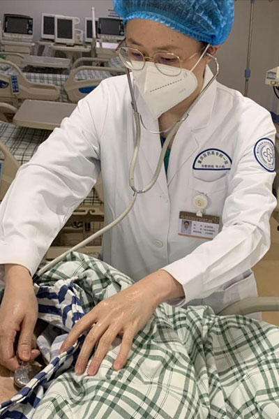 正在為患者檢查的張秀麗。重慶醫(yī)藥高專附一院供圖