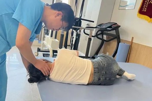 康復治療師為患者進行手法復位。重慶西區(qū)醫(yī)院供圖