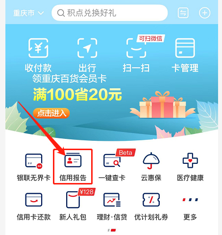 打開“云閃付”手機(jī)APP,在“首頁”—“信用報告”版塊中,可查詢個人信用報告。