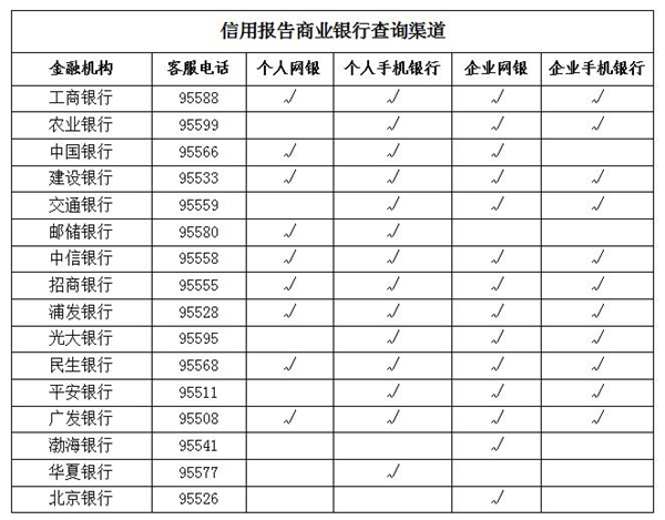 市內(nèi)人民銀行各分支行提供個人及企業(yè)信用報告柜臺查詢服務(wù)。