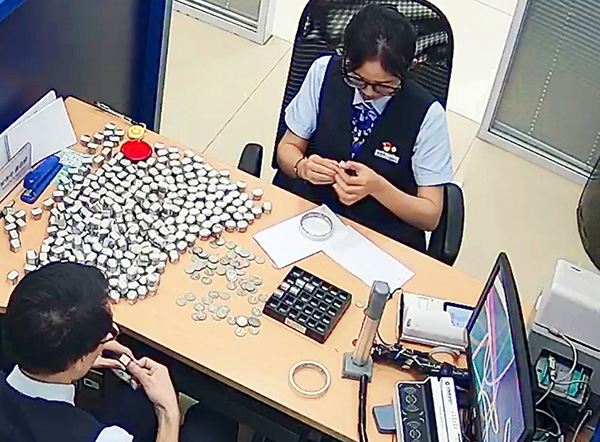 為客戶清點(diǎn)硬幣。建行重慶市分行供圖
