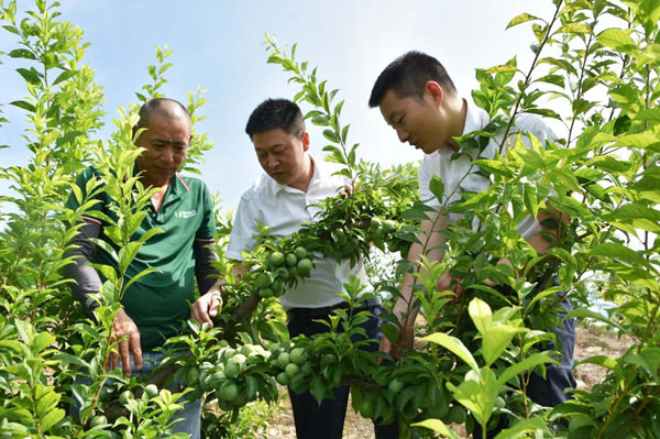工作人員赴田地走訪,支持脆李產(chǎn)業(yè)發(fā)展。工行重慶市分行供圖