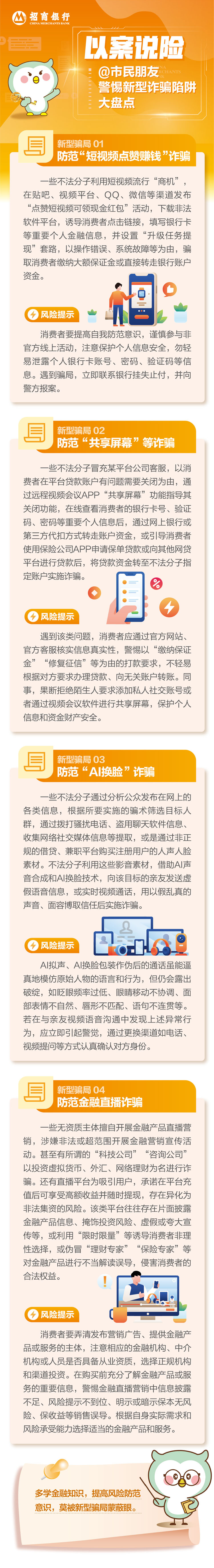 近年來,新型詐騙手段花樣百出,嚴(yán)重威脅到市民財(cái)產(chǎn)安全,招行重慶分行提醒廣大市民,多學(xué)習(xí)金融知識,提高風(fēng)險(xiǎn)防范意識,莫被新型騙局蒙蔽眼。(招行重慶分行)