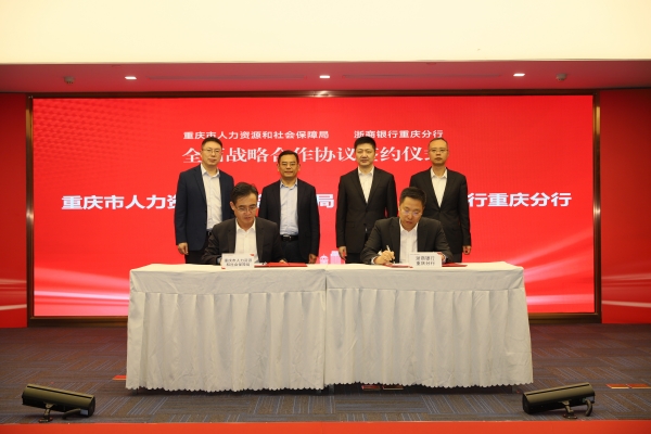 重慶市人力資源和社會(huì)保障局與浙商銀行重慶分行簽署全面戰(zhàn)略合作協(xié)議。浙商銀行重慶分行供圖