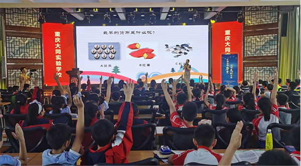 趣味財商課堂上,學生們踴躍舉手發(fā)言。漢口銀行重慶分行供圖