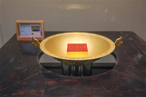 現場的“麻辣金鍋”是繼“德莊大火鍋”之后,重慶火鍋又一個重要形象符號。投入260萬,用4500克純度達到99.99的黃金材質打造,鍋中的印章篆刻著“麻辣鮮香”四個字,兩側鐫刻著“人類永存,火鍋永存”。