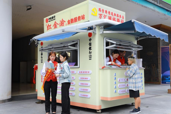 利用“紅金渝”金融服務(wù)站傳播金融知識(shí)。中信銀行重慶分行供圖