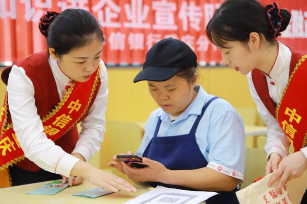 中信銀行重慶魯能支行、北部新區(qū)支行等深入企業(yè),在寸灘街道海爾工廠內(nèi)設(shè)置宣傳點(diǎn),發(fā)放重慶市銀行業(yè)金融消費(fèi)防欺詐提示宣傳折頁(yè)、印有宣傳月金融口號(hào)的宣傳品等資料,為企業(yè)員工講解非法集資、殺豬盤(pán)詐騙等金融知識(shí),提醒大家要加強(qiáng)自我防范意識(shí),提升防騙識(shí)騙能力。