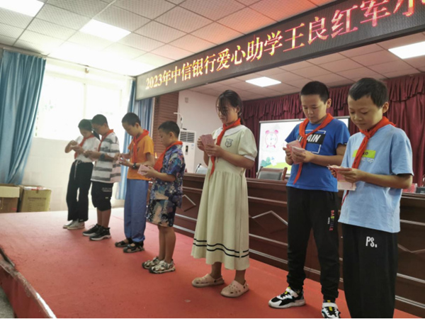 中信銀行重慶分行愛(ài)心助學(xué)隊(duì)伍帶領(lǐng)星光支行走進(jìn)重慶綦江王良紅軍小學(xué)開(kāi)展“小小銀行家”金融課程,“行長(zhǎng)消保講師團(tuán)”專家講師星光支行行長(zhǎng)梁娜,以深入淺出的語(yǔ)言、生動(dòng)的案例,向同學(xué)們普及人民幣知識(shí),引導(dǎo)同學(xué)們樹(shù)立存款理財(cái)觀念、建立反詐防騙意識(shí)。