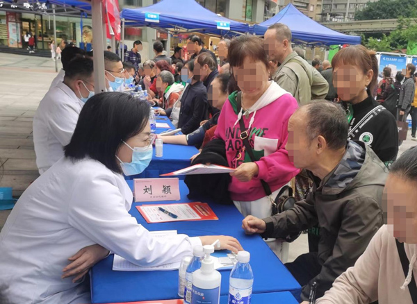 11月11日上午,在九龍坡區(qū)楊家坪步行街廣場(chǎng),重慶西區(qū)醫(yī)院內(nèi)分泌代謝病科主任劉穎、心血管內(nèi)科行政主任兼內(nèi)二科主任朱朝江 、骨科行政主任劉發(fā)平等帶領(lǐng)醫(yī)療團(tuán)隊(duì),開(kāi)展聯(lián)合義診。