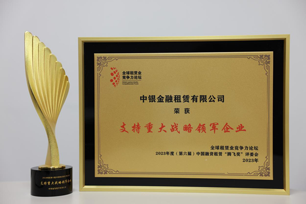 近日,在全球租賃業(yè)競爭力論壇主辦的“中國融資租賃騰飛獎”評選中,中銀金融租賃有限公司獲得“支持重大戰(zhàn)略領軍企業(yè)”榮譽。