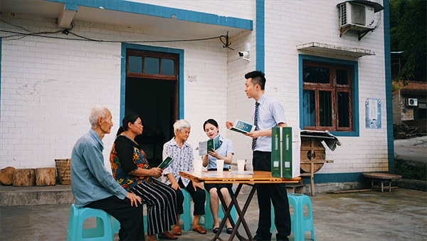 工作人員在鄉(xiāng)村開展日常走訪調(diào)研。郵儲銀行重慶分行供圖