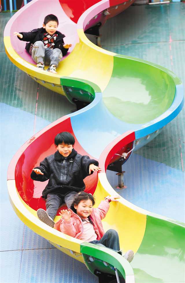 2023年12月31日,巴濱路魅力山城運(yùn)動(dòng)公園,幾個(gè)小朋友正高興地游玩彩虹滑梯。特約攝影 鐘志兵/視覺(jué)重慶
