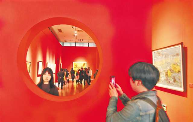 1月1日,重慶美術(shù)館,市民和游客正在觀(guān)賞美術(shù)作品。特約攝影 鐘志兵/視覺(jué)重慶