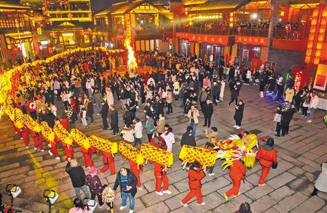 2023年12月30日,萬(wàn)州區(qū)天生城文旅街區(qū),板凳龍巡游活動(dòng)精彩紛呈。特約攝影 冉孟軍/視覺(jué)重慶