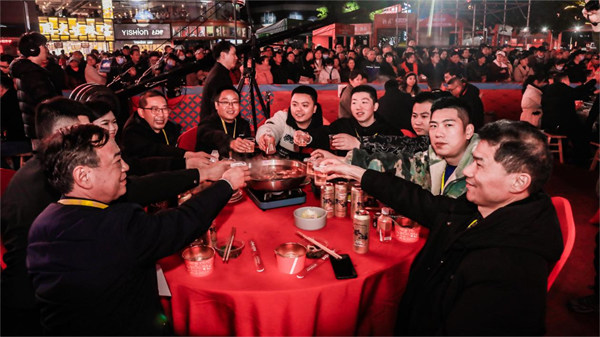活動期間,德莊、小天鵝、劉一手、周師兄、周君記、庖丁家、鹵校長、鶯花渡、牧馬人等九大火鍋品牌齊聚九龍門下,運營99桌火鍋團圓宴,6000平米同心圓禮宴區(qū),打造千人同燙同食火鍋的新年名場面;老船王火鍋長龍宴也在現(xiàn)場大擺38米“長龍”,熱鬧開席。