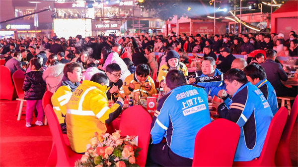 在火鍋團圓宴區(qū)域,環(huán)衛(wèi)工人、外賣小哥、勞模代表、九龍好人、鄉(xiāng)村振興先鋒個人等99名“城市追光者”被邀請現(xiàn)場品鑒火鍋,以此感謝他們過去一年對城市的貢獻,向他們表達誠摯的敬意。