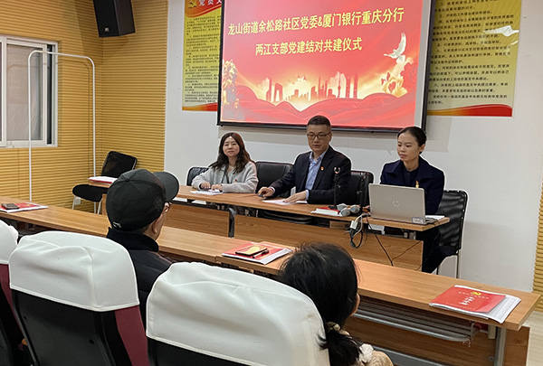 廈門銀行重慶渝北支行與余松路社區(qū)簽訂黨建共建協(xié)議。廈門銀行重慶分行供圖