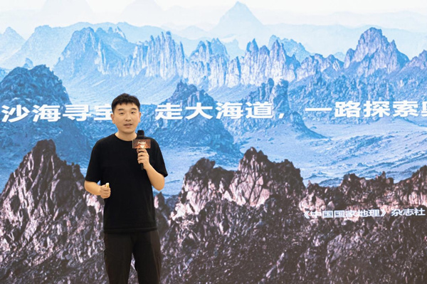 《中國(guó)國(guó)家地理》策劃編輯高新宇現(xiàn)場(chǎng)講解。中信銀行重慶分行供圖