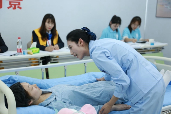 “左奶奶您好,我是社區(qū)養(yǎng)老護(hù)理員小張,受您女兒委托……”在養(yǎng)老護(hù)理員比賽現(xiàn)場(chǎng),賽場(chǎng)還原了“居家”“社區(qū)”“機(jī)構(gòu)”三類(lèi)養(yǎng)老方式的真實(shí)場(chǎng)景,每個(gè)場(chǎng)景中都有經(jīng)過(guò)專(zhuān)業(yè)培訓(xùn)的“標(biāo)準(zhǔn)化老人”等待著選手的照護(hù)。選手需要根據(jù)不同場(chǎng)景和不同案例需要,切換自身角色,在規(guī)定時(shí)間內(nèi)給予老人個(gè)性化照護(hù)。