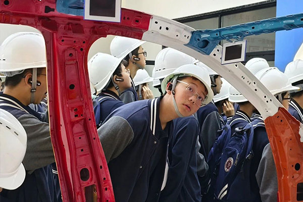 在長(zhǎng)安汽車(chē)全球研發(fā)中心,學(xué)生們了解了長(zhǎng)安汽車(chē)的歷史和自主研發(fā)的核心零部件,并體驗(yàn)了乘坐其明星車(chē)型。通過(guò)豐富的圖文聲像實(shí)物資料,學(xué)生們領(lǐng)略了長(zhǎng)安汽車(chē)的百年發(fā)展歷程,以及從制造到“智造”的蛻變。在探訪(fǎng)長(zhǎng)安汽車(chē)NVH實(shí)驗(yàn)室時(shí),學(xué)生們體驗(yàn)了極致分貝偏執(zhí)降噪,深刻理解了長(zhǎng)安汽車(chē)“超極限的考驗(yàn),只是為了產(chǎn)品力0.01的精進(jìn)”的含義。