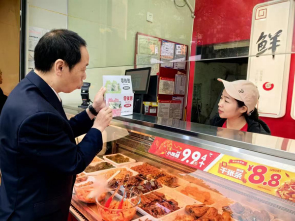 為商戶送零鈔上門,宣傳人民幣現(xiàn)金支付政策。工行重慶市分行供圖