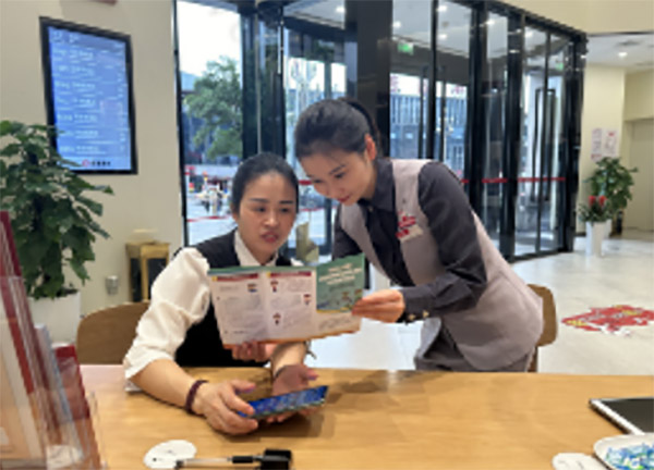 向等候辦理業(yè)務(wù)的客戶宣傳相關(guān)政策。招行重慶分行供圖