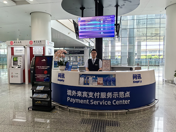 重慶首個(gè)“境外來(lái)賓支付服務(wù)示范點(diǎn)”在江北國(guó)際機(jī)場(chǎng)設(shè)立。中國(guó)銀行重慶市分行供圖