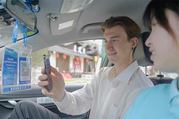 外籍友人通過(guò)支付寶掃碼乘車。支付寶重慶分公司供圖