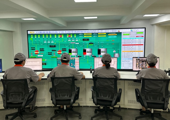 口服液體制劑數(shù)字化車間中央控制中心。 人民網(wǎng)記者 李美玉攝
