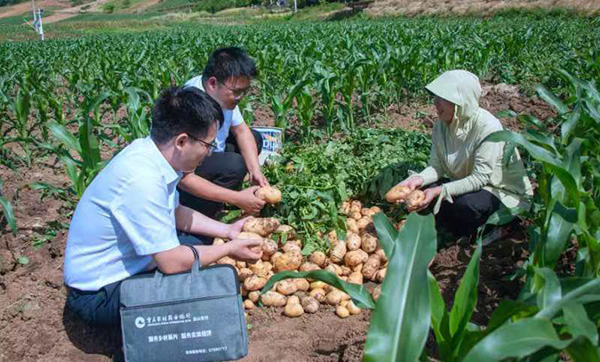 工作人員調(diào)研洋芋生產(chǎn)、銷售情況。重慶農(nóng)商行供圖