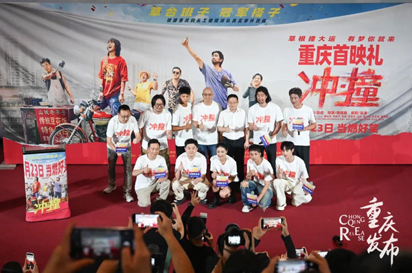 8月10日,根據(jù)重慶碼頭工橄欖球隊(duì)真實(shí)事件改編的喜劇動作電影《沖撞》在重慶舉行首映禮,影片原型人物重慶碼頭工橄欖球隊(duì)隊(duì)員與電影主創(chuàng)一同現(xiàn)身,夢幻聯(lián)動。