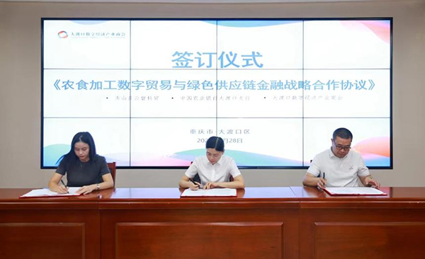 農(nóng)行重慶大渡口支行、大渡口區(qū)數(shù)字經(jīng)濟(jì)產(chǎn)業(yè)商會(huì)、秀山云智科貿(mào)現(xiàn)場(chǎng)簽訂《農(nóng)食加工數(shù)字貿(mào)易與綠色供應(yīng)鏈金融戰(zhàn)略合作協(xié)議》,未來將為秀山縣茶產(chǎn)業(yè)示范村鐘靈鎮(zhèn)凱堡村與大渡口區(qū)蜂窩壩村之間的產(chǎn)業(yè)合作提供切實(shí)助力。(曾英豪)