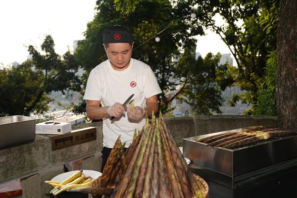 活動(dòng)現(xiàn)場(chǎng)還一同舉辦了珮姐秋筍發(fā)布會(huì),為了讓到場(chǎng)嘉賓能多維度地感受方竹筍的鮮美,珮姐廚師長(zhǎng)采用“燒剝筍”這種最為原生態(tài)的方式,現(xiàn)場(chǎng)烤制當(dāng)日采摘未經(jīng)剝殼的鮮筍。這種烹飪方式,最大程度地保留了竹筍的香氣與清甜口感,一口還原大自然的淳樸真味。