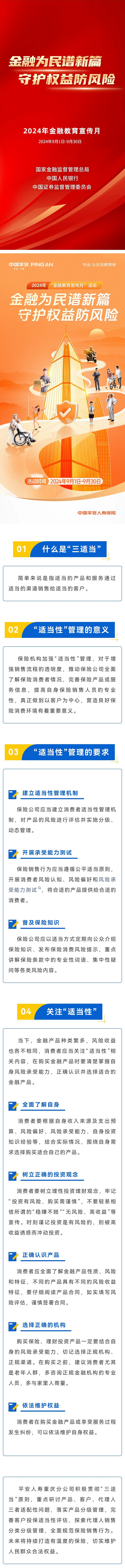 9月1日至9月30日期間,平安人壽重慶分公司積極開(kāi)展2024年9月“金融教育宣傳月”活動(dòng),通過(guò)案例、漫畫(huà)、長(zhǎng)圖等形式,幫助公眾了解金融知識(shí),認(rèn)識(shí)金融風(fēng)險(xiǎn),切實(shí)保護(hù)金融消費(fèi)者合法權(quán)益。本期主題為《一圖了解“三適當(dāng)”原則 做理性金融消費(fèi)者》,一起來(lái)看看?。ㄆ桨踩藟壑貞c分公司供圖)