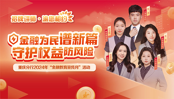 9月1日,2024年“金融教育宣傳月”活動在重慶全轄統(tǒng)籌啟動,聚焦“金融為民譜新篇,守護權(quán)益防風險”主題,招行重慶分行推出“招牌講師 渝您相約”系列課堂,普及分享最新金融政策解讀、投資理財技巧,深入探討金融風險防范與權(quán)益保護等熱點話題,幫助市民提升金融素養(yǎng),在享受金融服務便利的同時,更好地維護自身權(quán)益,防范潛在風險,共同營造健康、和諧的金融環(huán)境。(招行重慶分行)