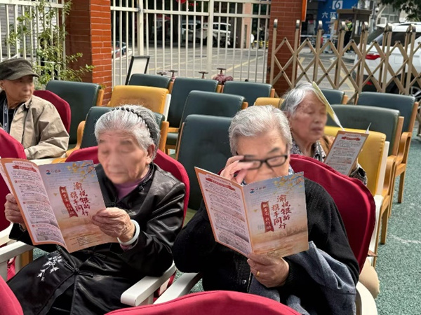 養(yǎng)老服務(wù)中心老年朋友在閱讀主題宣傳手冊。平安人壽重慶分公司供圖