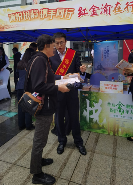 10月12日,工行重慶市分行在重慶金融監(jiān)督管理局的指導(dǎo)下,按照“渝悅銀齡·攜手同行——‘紅金渝’在行動”主題活動安排,組織工作人員參加在楊家坪商圈舉行的現(xiàn)場活動。