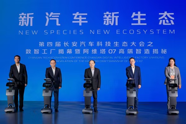 大會現(xiàn)場,中國聯(lián)通重慶市分公司總經(jīng)理覃晟、長安汽車總裁王俊、華為重慶分公司總經(jīng)理蘇亮等共同為長安數(shù)智工廠揭牌,標志著這一行業(yè)標桿項目正式進入量產(chǎn)階段。