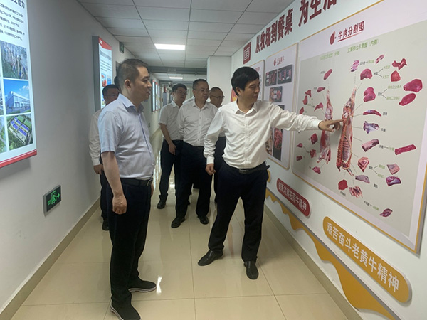 重慶三峽銀行黨委書記、董事長(zhǎng)劉江橋(左1)調(diào)研牛肉加工企業(yè)。重慶三峽銀行供圖