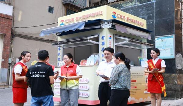 中信銀行重慶分行在“紅金渝”網(wǎng)格驛站聯(lián)合社區(qū)進(jìn)行支付便利化宣傳。中信銀行重慶分行供圖