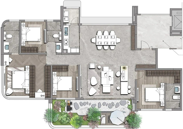 為了讓室內(nèi)功能性更強(qiáng),業(yè)主可以進(jìn)行超級(jí)主臥套房、次臥聯(lián)通花園、超大客廳等多元設(shè)計(jì)組合,讓以改善需求為核心的四代宅,為業(yè)主提供對(duì)理想生活的無(wú)限想象。