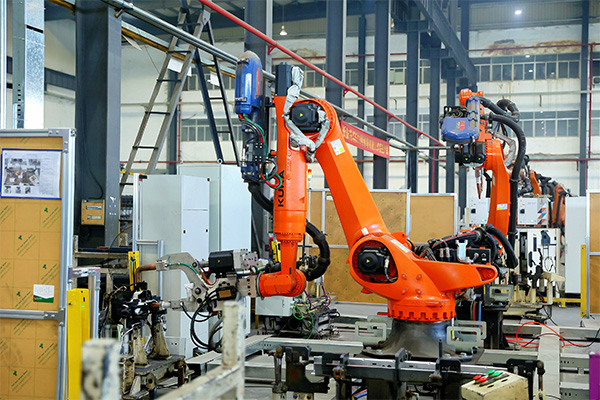 重慶明天機(jī)械有限公司的機(jī)器人焊接生產(chǎn)線。向詩佳攝
