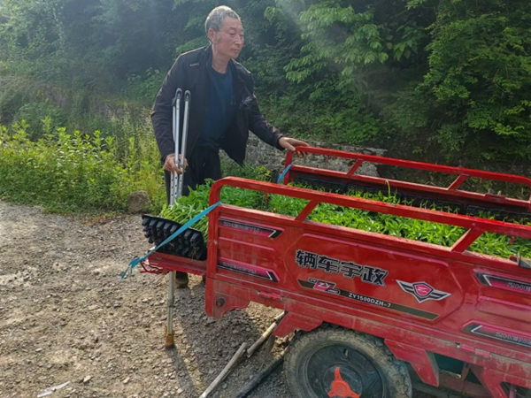 村民余祖學(xué)裝運(yùn)辣椒苗。中國(guó)人壽壽險(xiǎn)重慶市分公司供圖