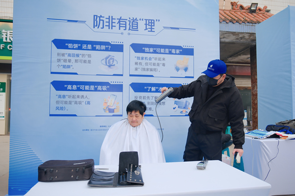 在“防非公益集市”區(qū)域,現場設置了防非小課堂、防非小游戲等多個互動環(huán)節(jié)。群眾通過參與互動游戲活動,不僅學習了防范非法集資知識,還領取了精美小禮品。“這個宣傳活動非常好,我們領取了防非宣傳冊,咨詢了非法集資疑問,還體驗了免費理發(fā),在學習知識的同時,也體驗了濃濃的生活味?!眳⑴c活動的一位市民說道。