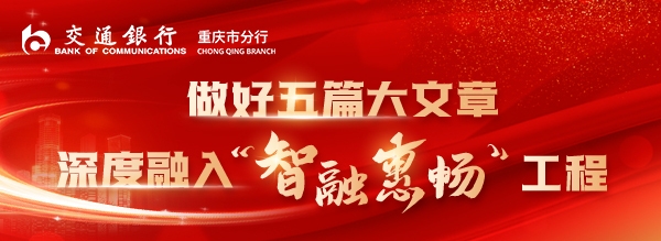 中央金融工作會議提出,做好科技金融、綠色金融、普惠金融、養(yǎng)老金融、數(shù)字金融五篇大文章。黨的二十屆三中全會對深化金融體制改革作出重要部署,要求“積極發(fā)展科技金融、綠色金融、普惠金融、養(yǎng)老金融、數(shù)字金融,加強對重大戰(zhàn)略、重點領(lǐng)域、薄弱環(huán)節(jié)的優(yōu)質(zhì)金融服務(wù)”。作為黨領(lǐng)導(dǎo)下的國有大行,交通銀行重慶市分行深入學(xué)習(xí)貫徹黨的二十屆三中全會精神和中央金融工作會議精神,多點發(fā)力做好金融“五篇大文章”,全方位匹配金融資源,深度融入“智融惠暢”工程,助力西部金融中心建設(shè),以自身高質(zhì)量發(fā)展持續(xù)為推進(jìn)中國式現(xiàn)代化注入金融動能。