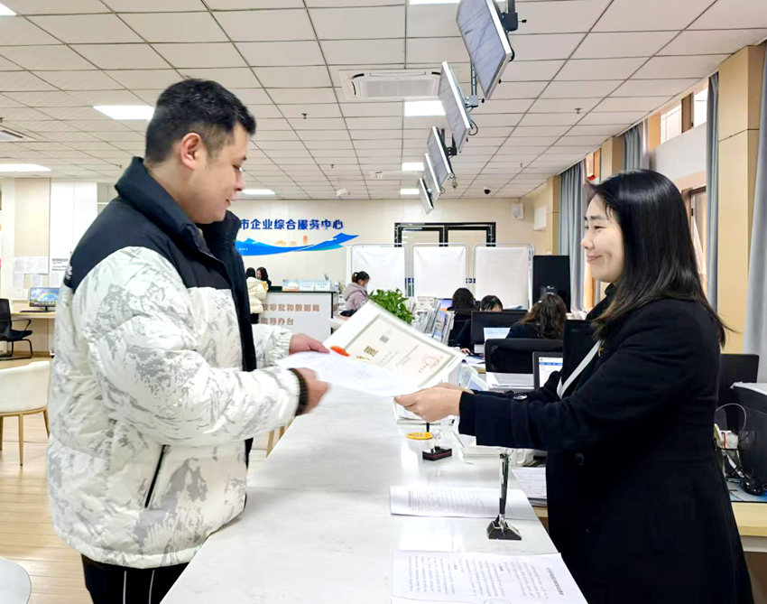 韓先生完成企業(yè)跨省遷移登記。遂寧市市場監(jiān)督管理局供圖