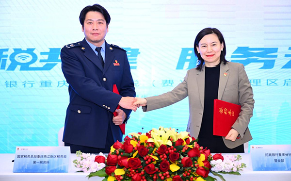 現(xiàn)場簽署銀稅(費)服務合作備忘錄。招商銀行重慶分行供圖