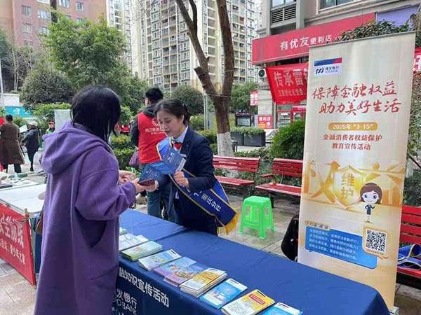 浦發(fā)銀行重慶分行營業(yè)部聯(lián)合渝北區(qū)汪家橋社區(qū)開展“3·15金融知識宣傳”活動。活動現(xiàn)場,銀行工作人員向社區(qū)居民詳細講解金融機構(gòu)支持消費、維護權(quán)益的具體舉措,并開展風險提示。