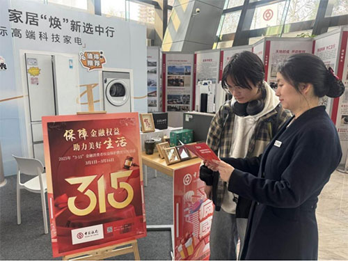 中行重慶市分行營業(yè)部以“3·15”為契機,緊緊圍繞“保障金融權益,助力美好生活”主題開展金融知識教育宣傳及促銷費惠民政策宣講活動。攜手新世紀家電賣場,結合家電以舊換新場景,設立了“以舊換新”金融知識宣傳站,一方面宣傳銀行惠民政策,另一方面向消費者普及“識別虛假促銷”、“防范分期陷阱”等金融知識,特別提示消費者要高度關注手續(xù)費、違約金等隱性成本,選擇與正規(guī)金融機構合作的分期服務,切實守護好自己的財產安全。